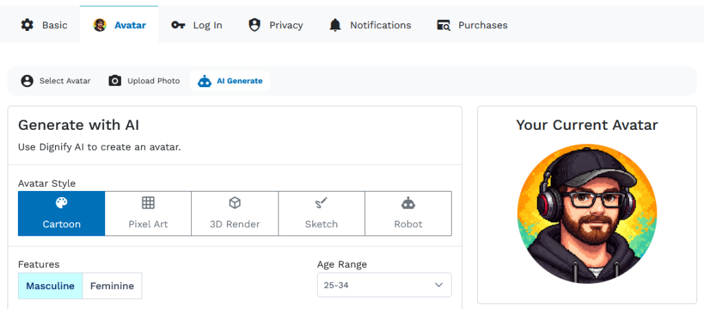 Head to your Settings page to try the new “AI Generate” option for your avatar